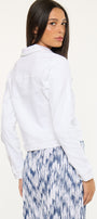 Add extra flair to your wardrobe with our Yumi Denim Jacket. Paired perfectly with your favorite skirt and jeans for a fun look!