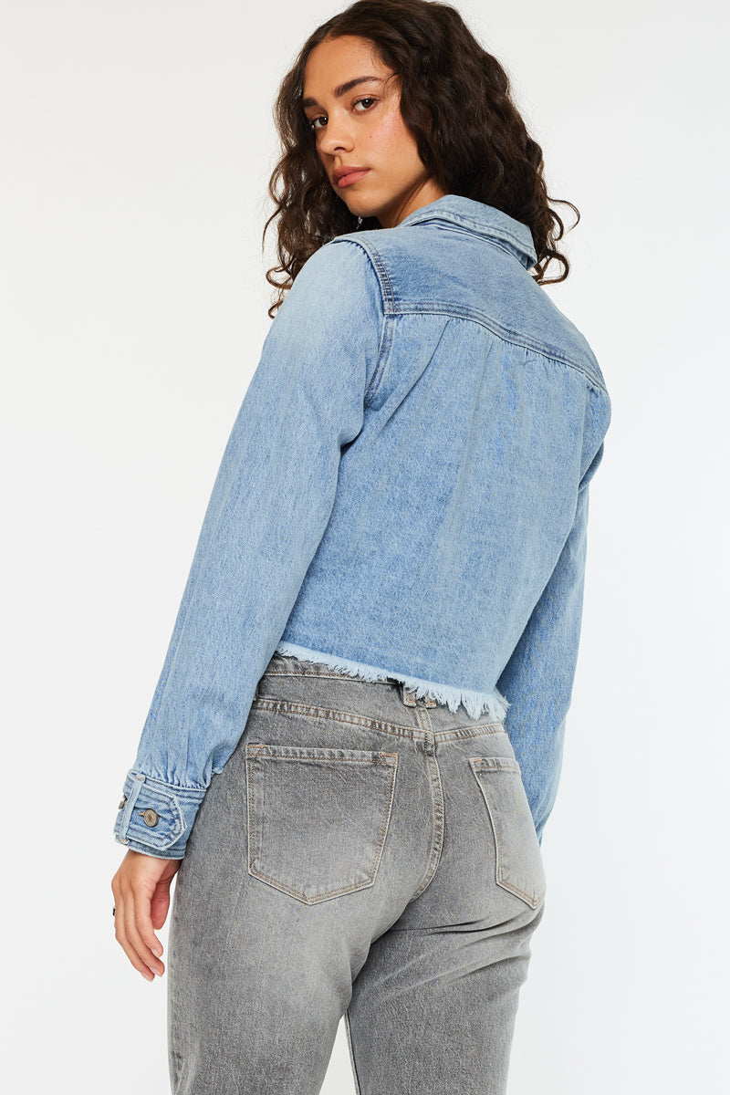 Complete your wardrobe with this year-round layering piece! Our Yuri Cropped Shacket is easily paired with a basic tee, jeans, and sneakers for that classic vibe. This light-washed denim features a raw frayed hem, button closure, and double button cuffs.