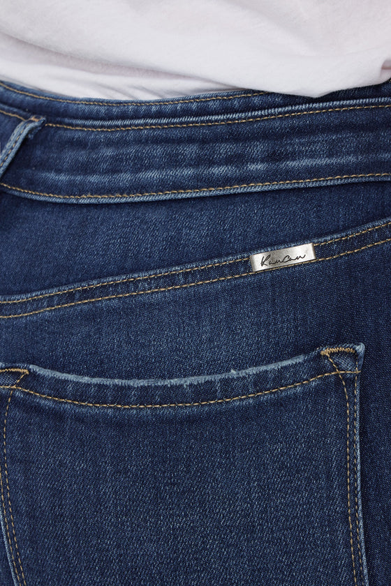 The Zoe High Rise Ankle Skinny Jeans come in dark-washed denim with medium fading, light whiskering, and a released hem detail that gives these jeans an extra lived-in look. Sits above the natural waistline as it tapers down the leg for an ankle skinny fit. This style comes with a double waistband design which allows you to add in your own strap for an extra tight fit. Features a classic five-pocket design, single-button front, and zip fly closure. Finished with silver-colored hardware.